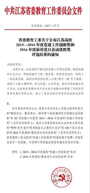 2017-06-29疯马秀 党委荣获江苏省高校2015—2016年度年度党建工作创新二等奖